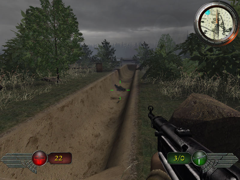 游戏延续了前作在画面上的优势,这款游戏结合了先进的图形开发技术,完善了游戏内在系统,游戏最大的卖点在于突出了实时图形状态效果。当游戏系统中的“动态光源转换(T&L)”得到充分运用后,对于游戏光影效果起到了质的变化,从对光影实时呈递进行随意修改到系统自动调节显示效果,再从简单的浮雕刻画和粒子特效到静态环境的细微描述方面(其实在今天看来,T&L不算什么高要求,早在Geforce256时代就已经出现),都能全方位的感触出一个真实的游戏空间,并且在真正意义上突出实时3D游戏的内在魅力。为了照顾配置较低的玩家,制作者采用了一个称之为“氩引擎(Argon Engine)”的平台开发,此引擎最大的优点就是可以跨平台支持各种API,也正是根据这种开发模式,使得电脑配置较低的玩家,也能充分享受这款“二战”类型游戏所带来的乐趣。此外,游戏还增加即时录像功能,让玩家在游戏之余可以细心的发现自己的不足。象死亡竞赛和夺旗模式这些经典的连线模式在多人连线部分依然得到保留。都为游戏平添了不少亮点,也让游戏更加趋于人性化。游戏塑造了全方位的“二战”体系,画面色彩逼真,纹理清晰,极具可玩性,呈现给玩家真实的“二战”场景。