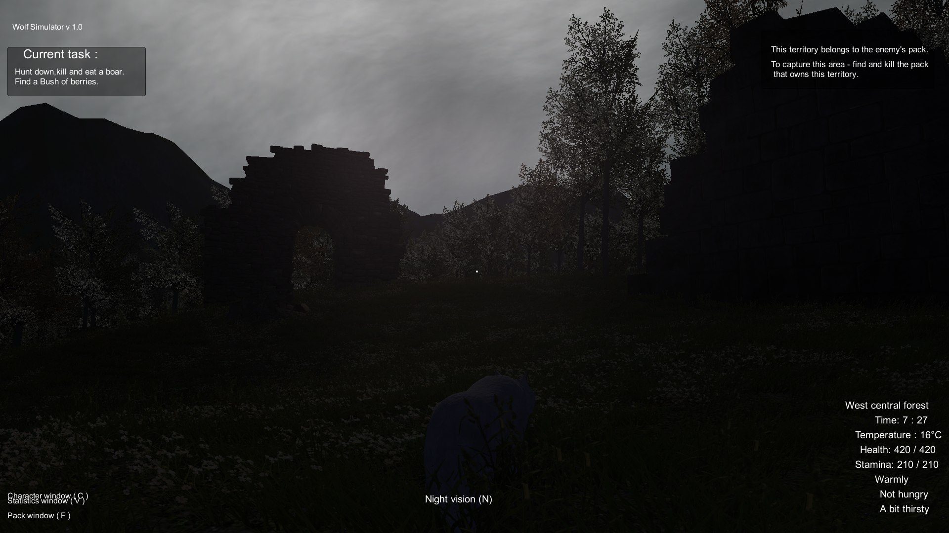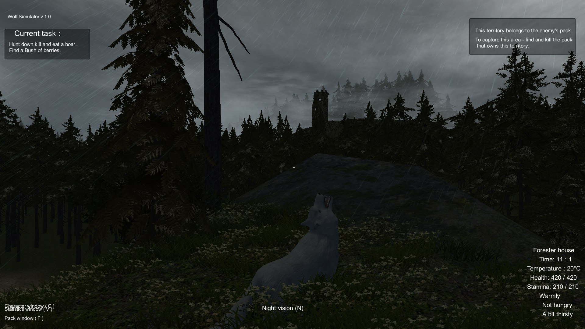 《化身为狼(Wolf Simulator)》是Second Reality制作的一款动物模拟动作生存游戏。狼属于群居动物,它们会依靠群体合作捕猎及守卫地盘,但也有一些个体会独自生存,在《化身为狼》中,玩家就将扮演一只独孤的狼,在森林里捕猎,小心人类和其他动物的攻击。