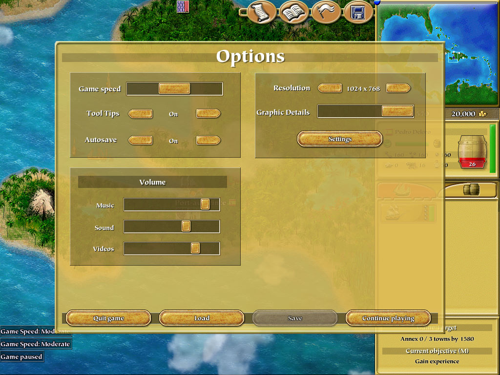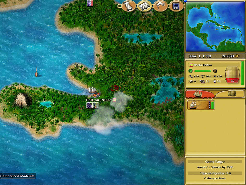 虽然此款游戏是一款仿大航海的策略游戏,不过操作还是比较重要的。由于战斗是即时的,而我们的船只的移动和进攻都是由滑鼠控制的,所以操作变的由为重要。鼠标的左键是放炮,右键是移动,如何掌握好进攻的尺度是非常之重要的。其次空格键的时候做的由为出色。按空格可以加快游戏中时间的流动,好让你感觉到你的船开的飞快,对于讨厌漫长航海等待的玩家来说不可不说是一个福音!