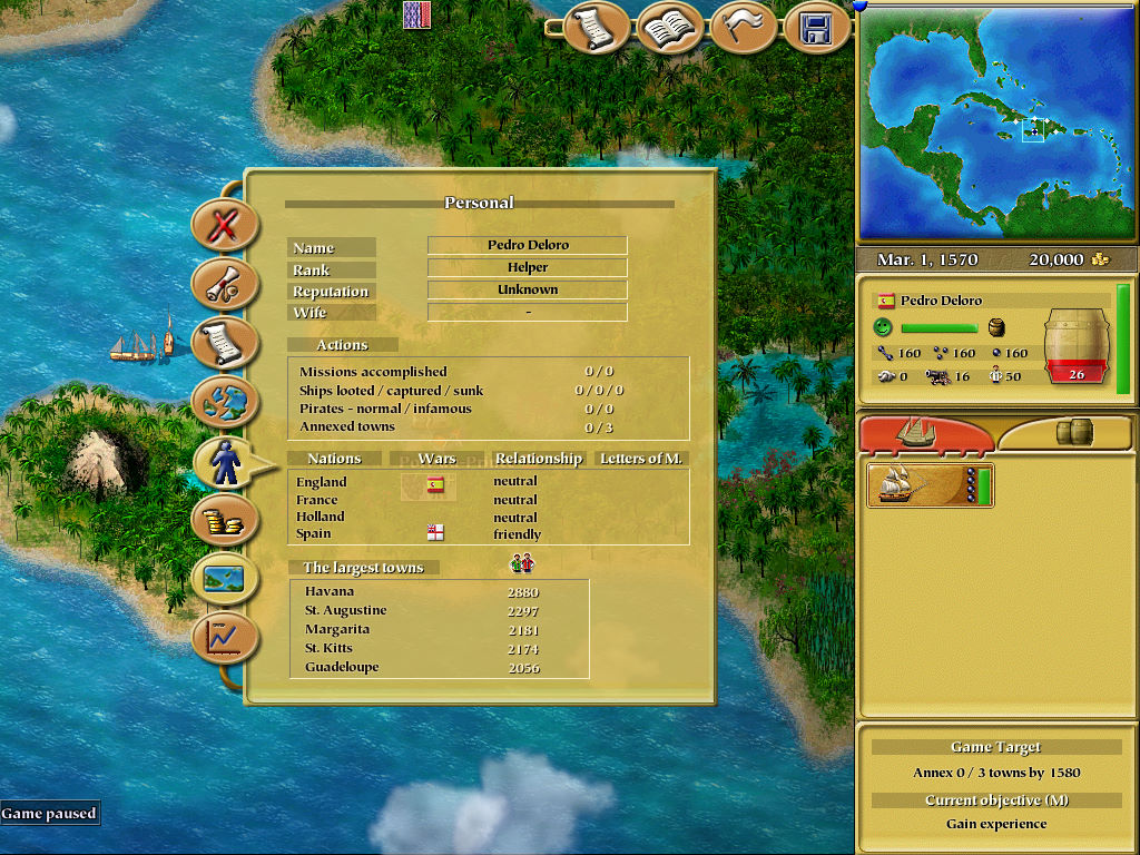 游戏的模式跟大航海时代基本差不多。在靠岸的时候我们可以到城市中补给物资。买航海的必须品。当然我们也可以买每个地方的特产转卖去其它地方,可以到赌场赌钱。(我一开始就是用S/L大法从这里赚钱的,呵呵)。而到了海上我们则可以去我们想去的地方,做一个傲视大海的海盗。