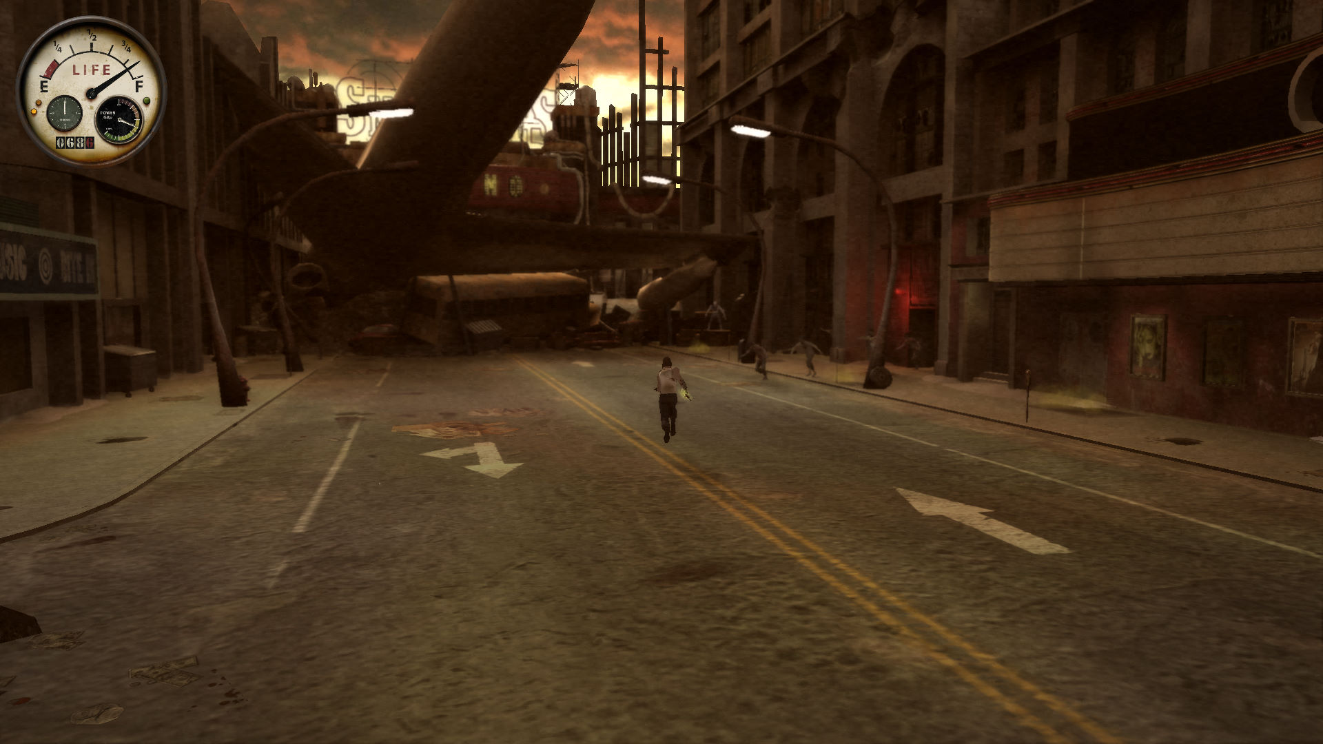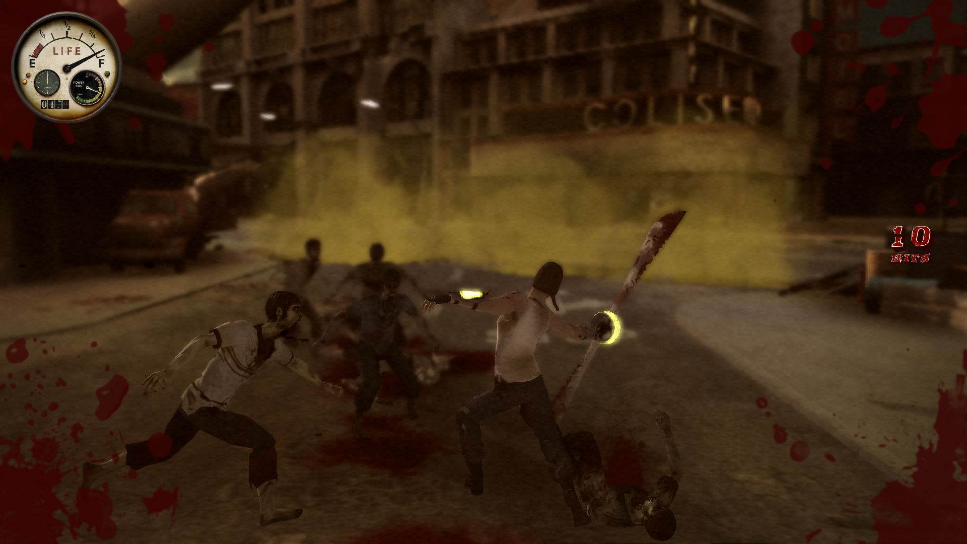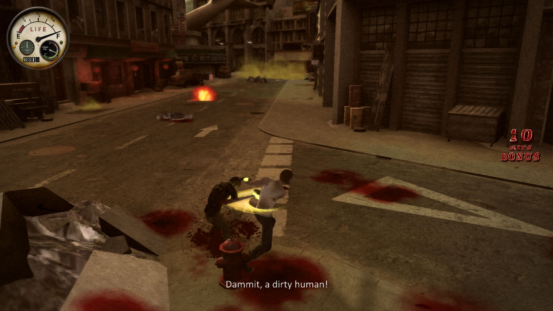 主人公名叫Joe Blades,是大劫难后幸存的一名飞行员,你的敌人是不断涌上街头的变异人,尽情发挥你丰富炫目的格斗动作吧,有些地方明显模仿了虐杀原形,地图规模虽不大,但末世气氛渲染的比较到位。