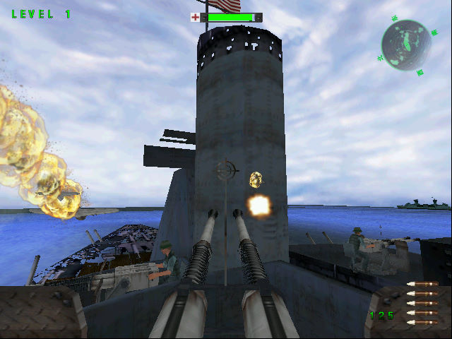 游戏提供多人操作模式,其中一种支持最多六人联手保卫一艘战舰,单人部分包含99个难度递增的关卡。