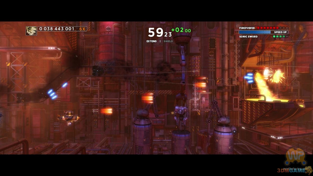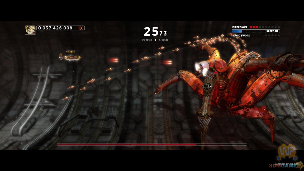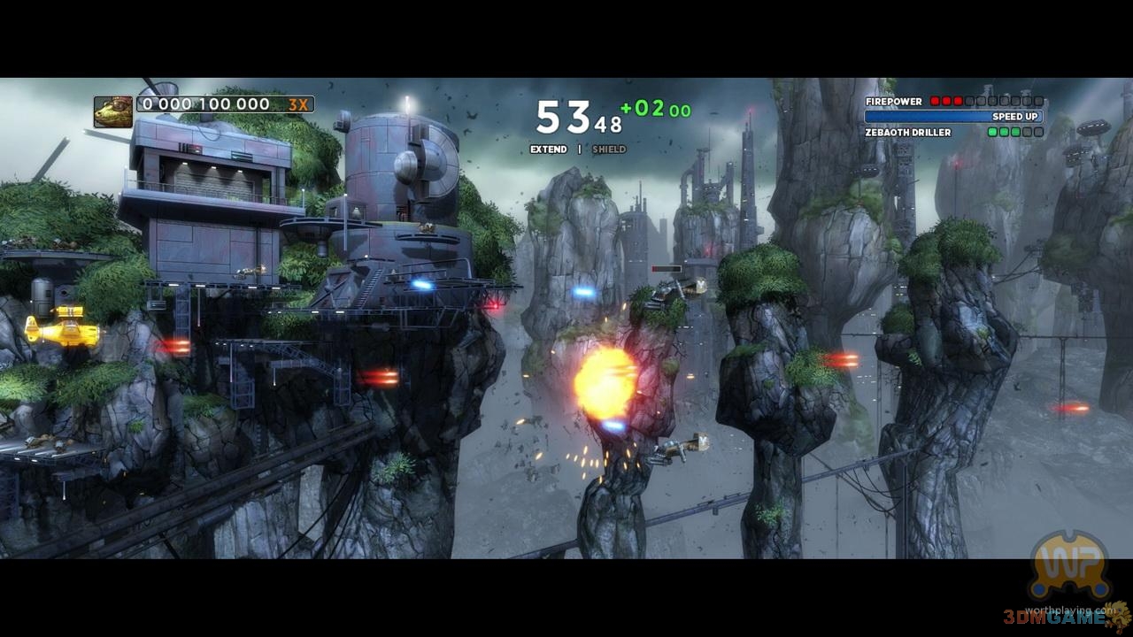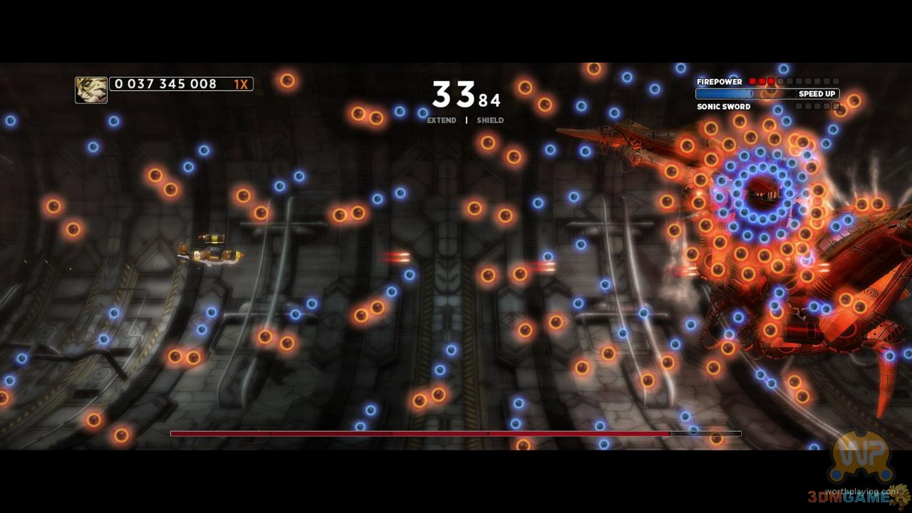 随着单机剧情的逐一解开新游戏模式以及道具,玩家便能透过Arcade模式来挑战自己的成绩,而你也能选择最高难度的疯狂模式(Insane)进行游戏,而疯狂模式除了会基本配给玩家的生存时间外,敌人所射出的子弹也是比平常多数倍,更讨厌的是击爆机体后它们还会喷出扩散型子弹,笔者差不多撑个30秒就挂彩了。除此之外,游戏也提供直接与魔王对战的Boss Training模式,透过此模式让你熟悉魔王的攻击模式,并以这样日复一日的磨练来超越自己的战斗能力。