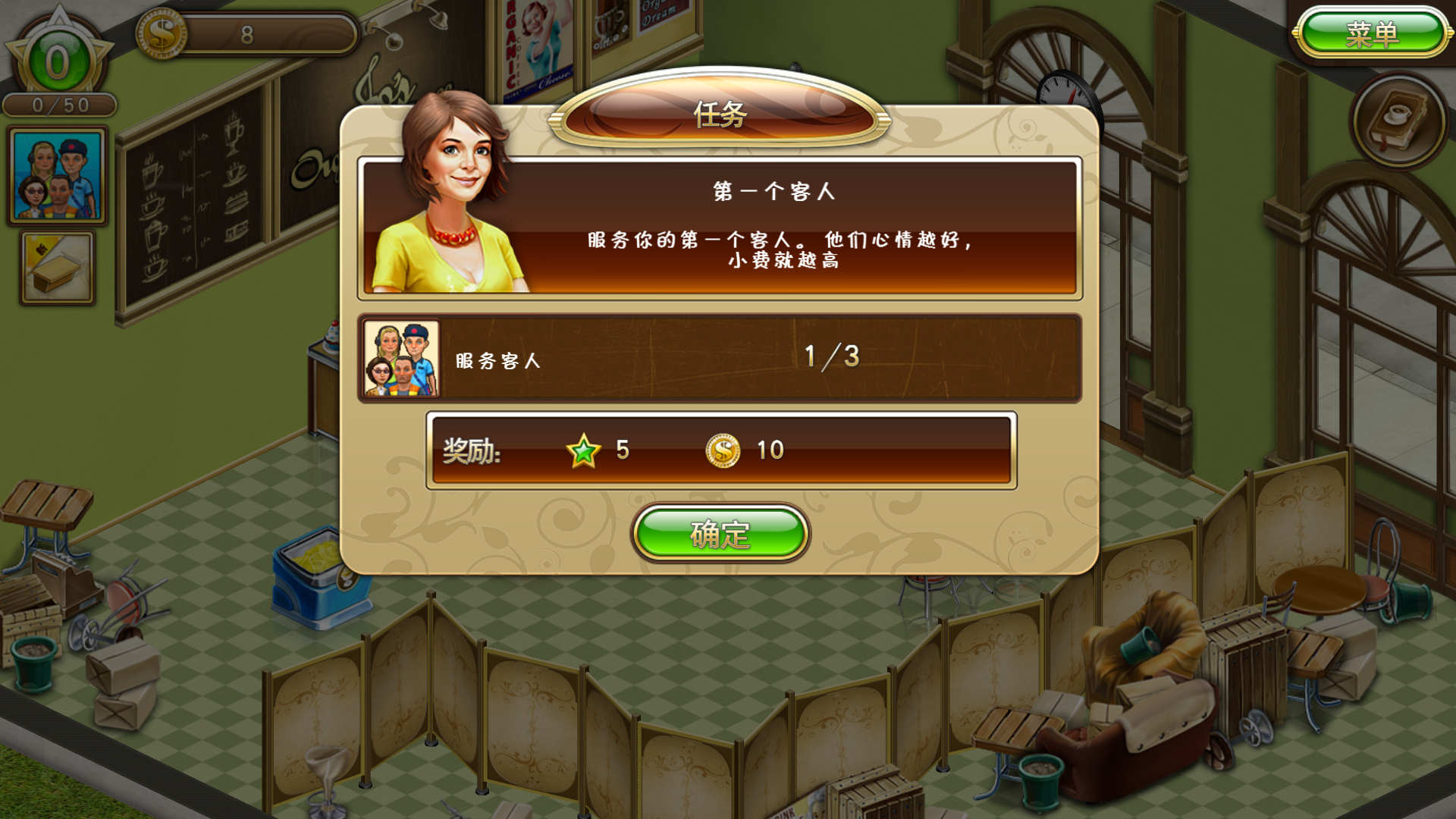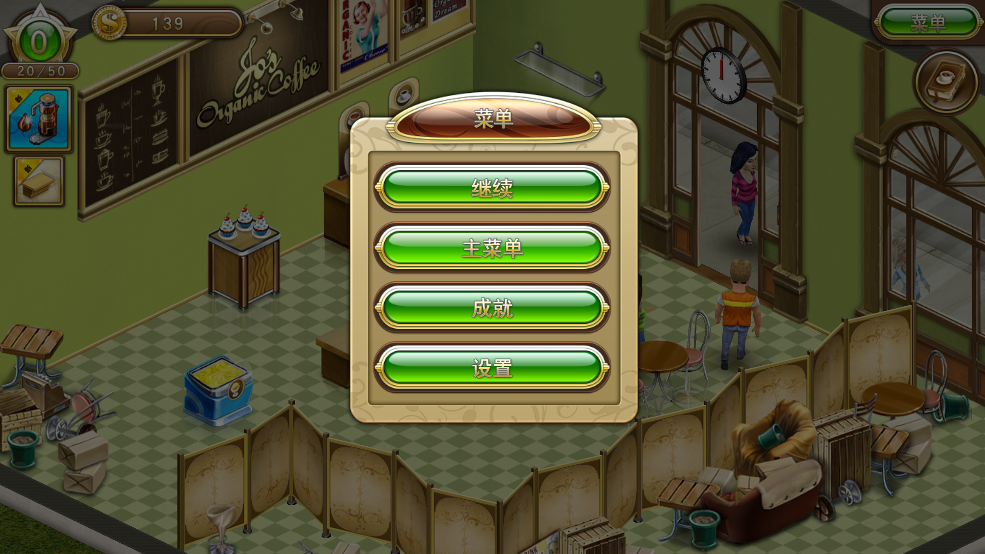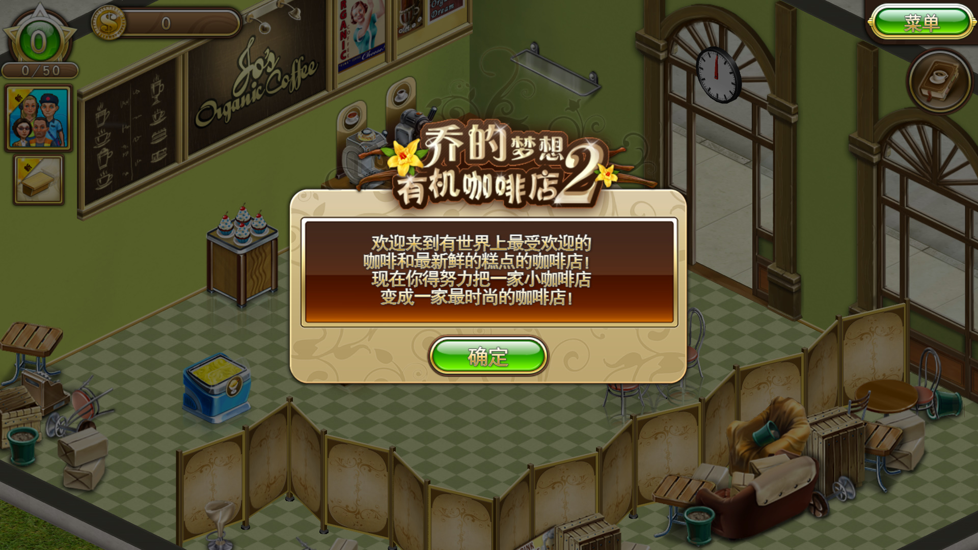 简中《乔的梦想:有机咖啡店2(Jo's Dream: Organic Coffee 2)》是由Melesta Games制作的一款模拟经营类游戏,镇上的咖啡节就要到了!所有知名的餐厅和咖啡师都来参加了,而乔也梦想着能拿到第一名。要实现这个远大的目标,第一步就是要开一家咖啡店。在这个步调紧凑的时间管理游戏,帮助乔面对经营咖啡店的挑战,最终目标是要将乔的小咖啡店变成属于她自己的时尚餐厅。努力工作,咖啡节的第一名就是你的啦!