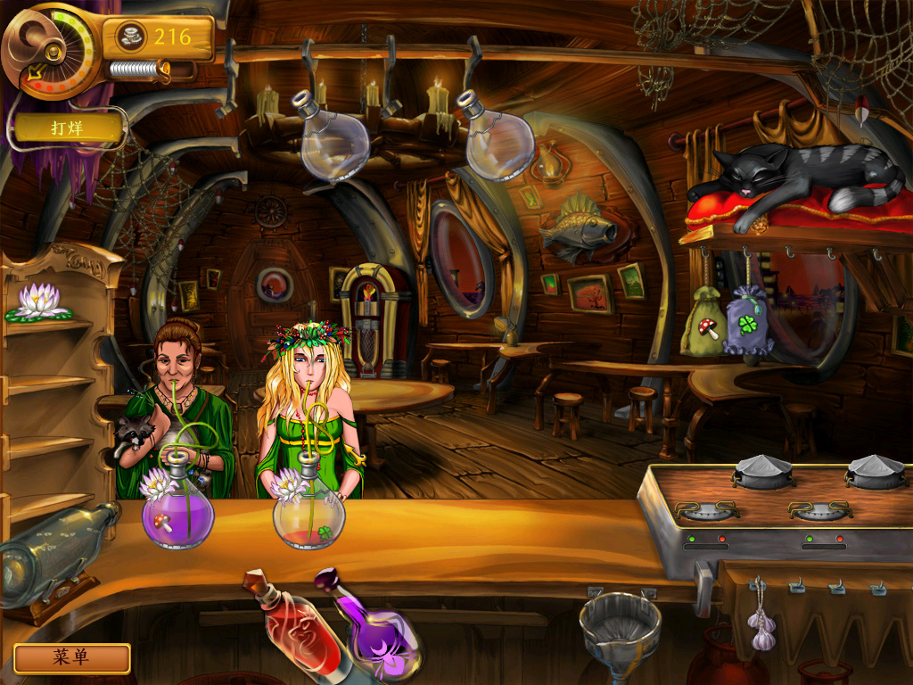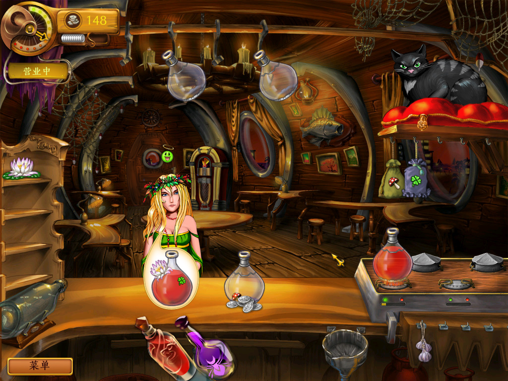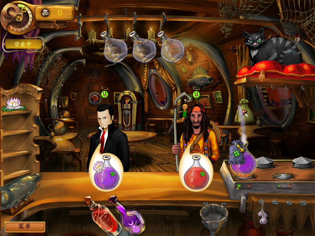 这里出售的是一些神奇的魔法饮料,人们喝了之后就会有特别的疗效。你要运用各种奇特的材料为顾客们调制饮料,其中包括彩虹般的液体,吸血鬼的尖牙等等。盛液体的器皿也制作得美轮美奂。魔法饮料吧中一共有5个不同的主题场景,40多个关卡等待你挑战。游戏过程中还加入了一些趣味性的益智小游戏。游戏的玩法很简单,一开始会有详细的教学指导你。