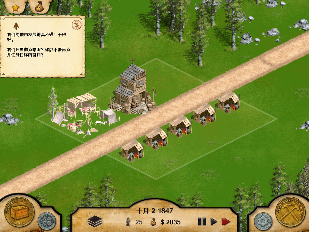 《1849》这款游戏或许会有些小众,但所有喜欢模拟建造类游戏的同学,只要能花些时间来适应一下游戏难度,那么成功带来的喜悦一定会让你无法自拔。在《1849》中的成功来自三个方面:村民的饱食度和快乐度;与其它城镇的贸易收入;以及你的城镇治安。
