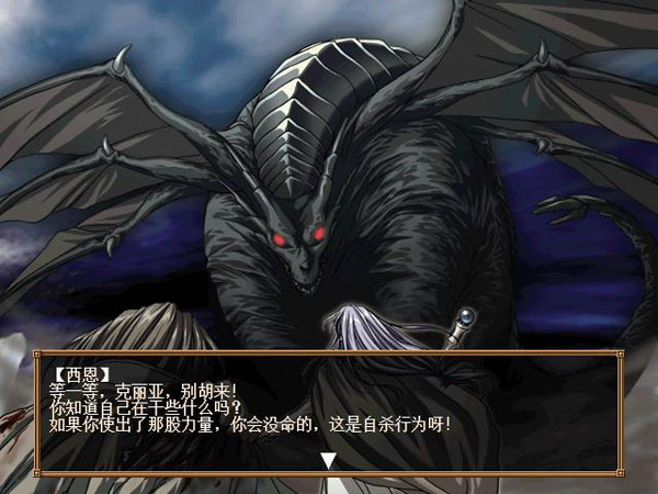 在AVG的模式之下,除了人物可以更加的活现之外,对于整体场景的表现,也会比起以前RPG时代的平板角度多了更多感觉。不管是城镇还是房屋,不管是商店还是酒吧,在这款游戏里面都相当有水准的全画面图形表现出来。人物走在世界地图上,你可以任意的在众多城市之间旅行,也可以在一些城市中购物与休息。这就是龙机传承的完整世界呈现!全画面动作的SLG战斗动画,战棋式沙盘推演! 在战斗方面,还是保留了SLG的基本模式。一开始的时候的分布与胜败条件都是计算机给你的,你必须在时间之内将作战目标达到。战棋式的行进方法让你对于战局一目了然,各种必杀技巧让你将敌人杀个过瘾。战斗的动画是全画面式的,敌我双方在画面两侧摆开,主角用最帅的姿势使出必杀的绝技,一瞬间将敌人化为灰烬!美术精致的传统大作,龙机传承将传承你最原始的感动! 在这款游戏之中有最精致的美术,有最有趣的剧情,有熟悉的接口。不需要在玩这游戏的时候在去学什么怪异的接口控制方法,也不需要理解一些什么难懂的新型设计逻辑。这款游戏最大的方法就是操作简单,并且相当容易上手!相信这款游戏对于喜欢传统式游戏的你会相当的有吸引力!