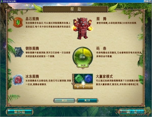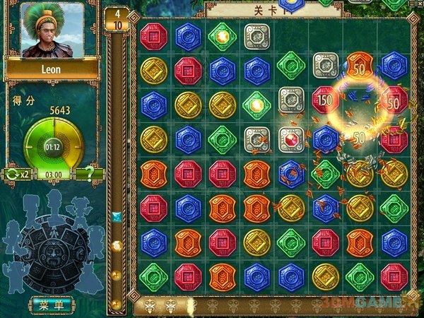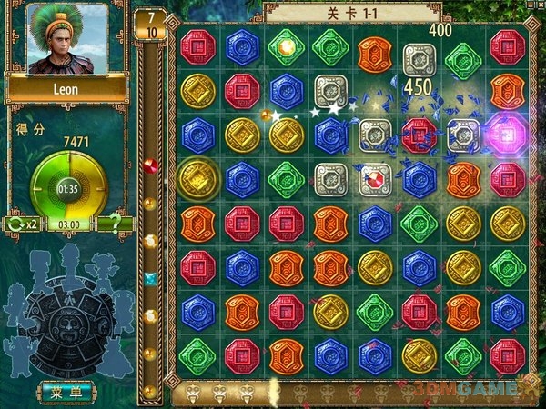 《蒙提祖玛的宝藏2》是一款消除闯关类游戏。玩家需要通过交换方块位置,将三个或更多相同颜色的方块连在一起以消除它们。某些小牌上面镶嵌着宝石,粉碎这些小牌就可以收集宝石。玩家必须在限定时间内收集完一定数量的宝石才能过关。如果构成4个同色小牌一队,可得到普通物品奖励;构成5个同色小牌一队,能得到能量物品奖励。此外,游戏中还有多种道具和能量图腾可供使用,增加了游戏的趣味性和挑战性。