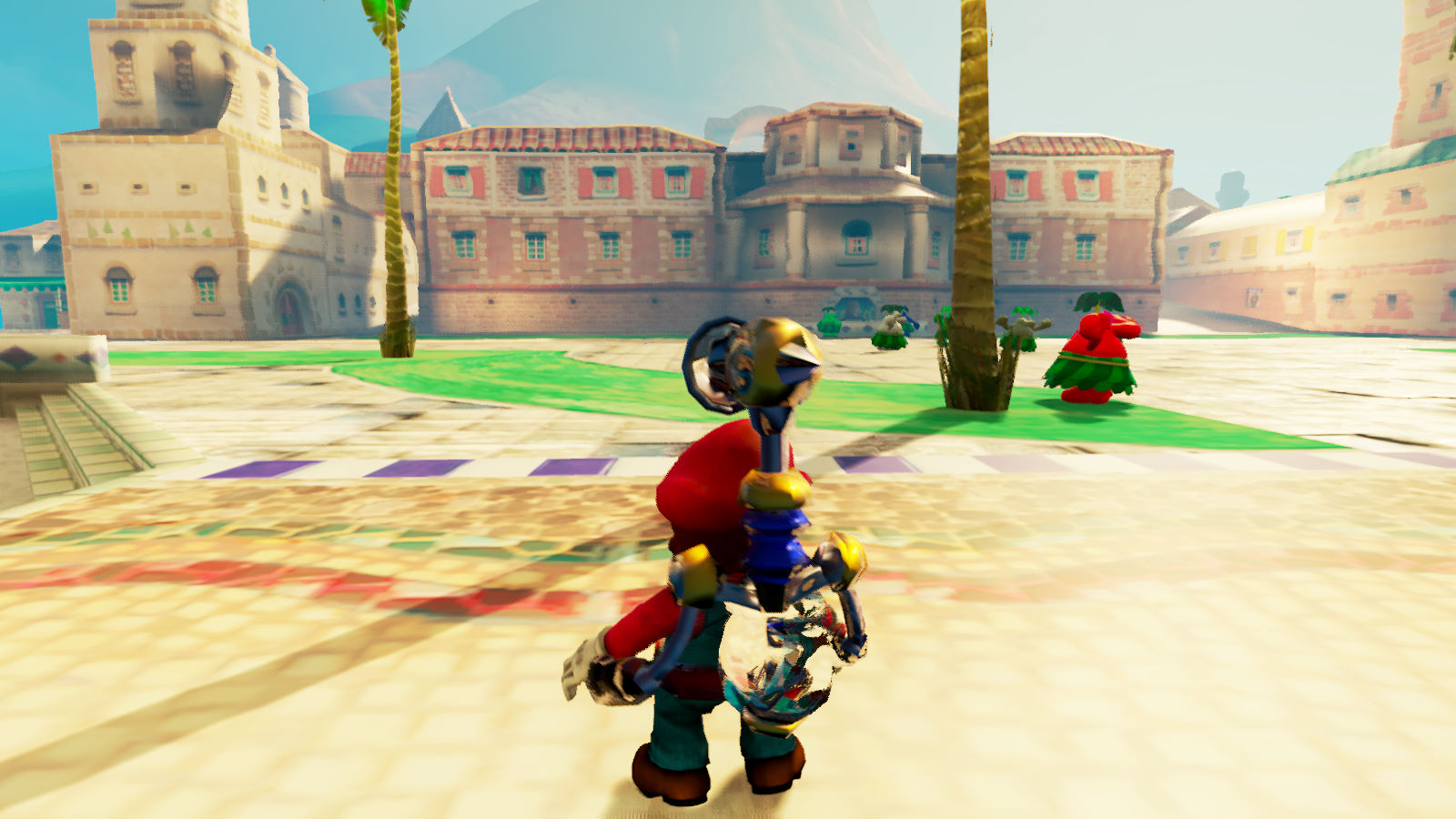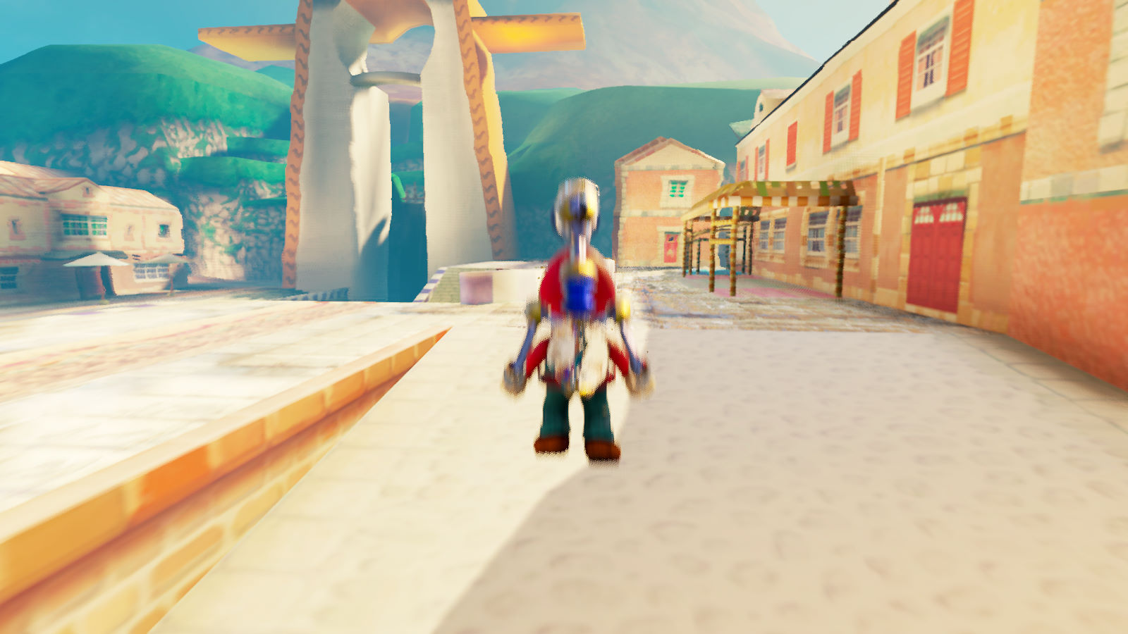 游戏里的画面锯齿比生化复刻要厉害那么一点点,不知是否生化的人物用的多边形要比《阳光马里奥》多的关系——当然比PS2的游戏还是要强得多,如果要照PC上的说法的话,大概生化用的是4X抗锯齿而《阳光马里奥》用的是2X反锯齿吧。但是牢骚归牢骚,这个游戏的画面仍然使得人惊奇不已,也更让人期待过些时候即将推出的《瓦里奥世界》。