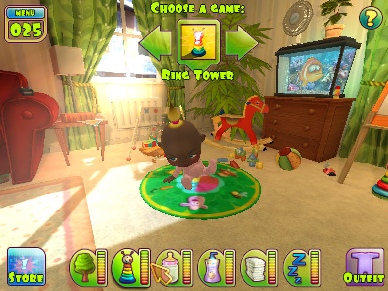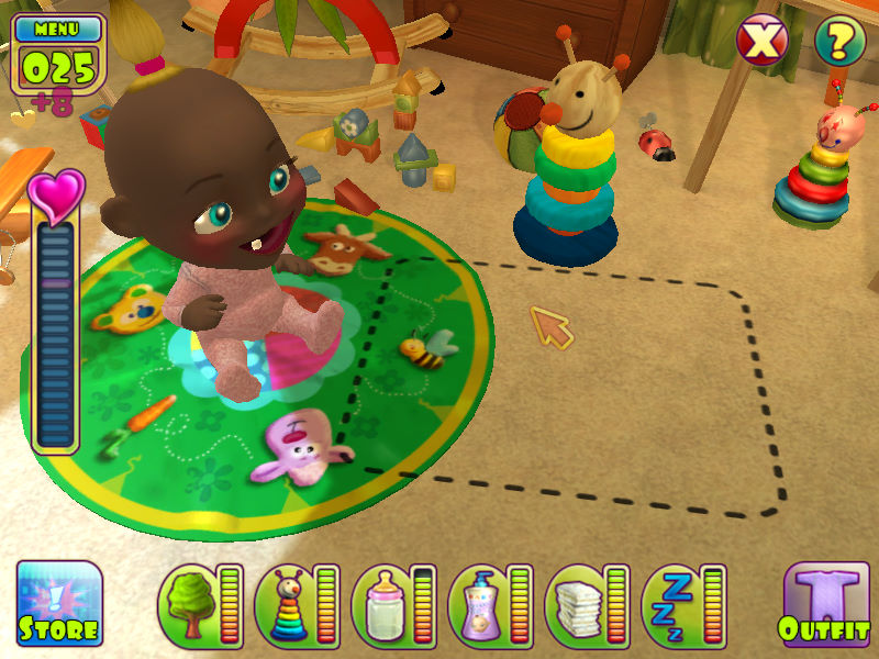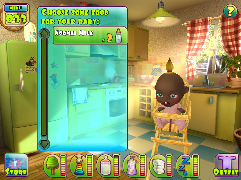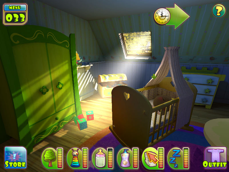 声音: 游戏的声音设计也很好,婴儿的哭声、笑声非常真实。感觉特别有趣的是看孩子睡觉的时候需要用鼠标轻轻摇动摇篮床,孩子睡得特别香甜,一会儿睡来的时候瞪着特大号的大眼对着你张开嘴笑,嘴里自然是“残缺不全”的牙。