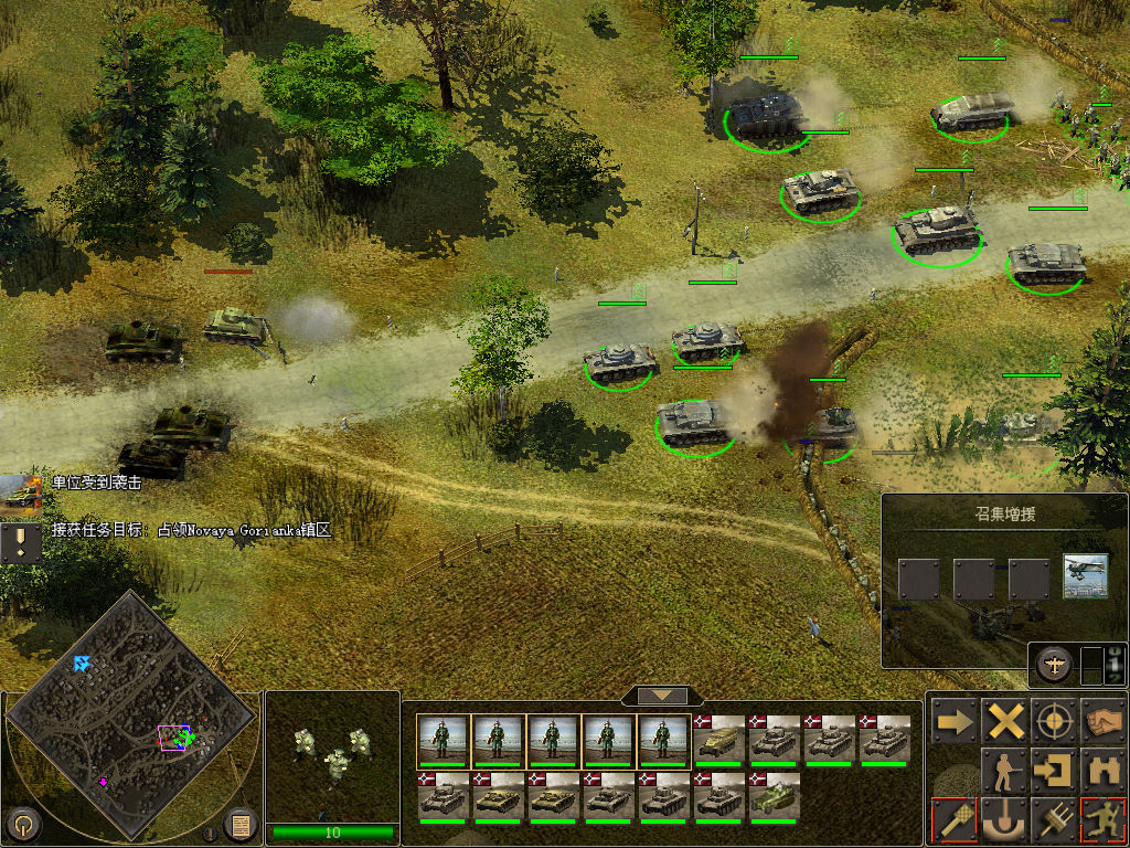 简中《前线:雷鸣战场(Frontline:Fields Of Thunder)》是由Nival Interactive (& N-Game Studios)制作的一款即时战略类游戏,玩家可以选择扮演德军去占领Prokhorovka的南部与北部,或者扮演苏联军队镇守前线,抵抗德军的进攻将他们打回到自己的老家。同时游戏中还提供了大量发生在库尔斯克的任务可供玩家选择。游戏基于大量历史研究,所以游戏中发生的许多故事都是真实可信的。同时为了保持游戏的平衡性,游戏的地图比一般的即时战略游戏的地图要大得多。