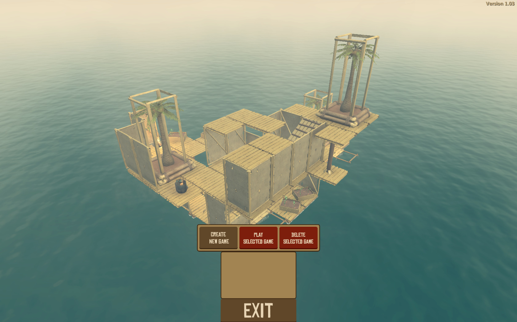 玩家在进入游戏后,处于一块2×2的小木筏上,除了手里的钩子再无他物。玩家需要收集顺着海水漂浮而来的各种材料,制备必需品,以此确保在海上生存下去。在小木筏上就可收集靠近的材料,而对于远处的材料可以选择抛出钩子钩过来,或是跳入海中游过去拾取,在这之前最好确认鲨鱼是否就在附近。