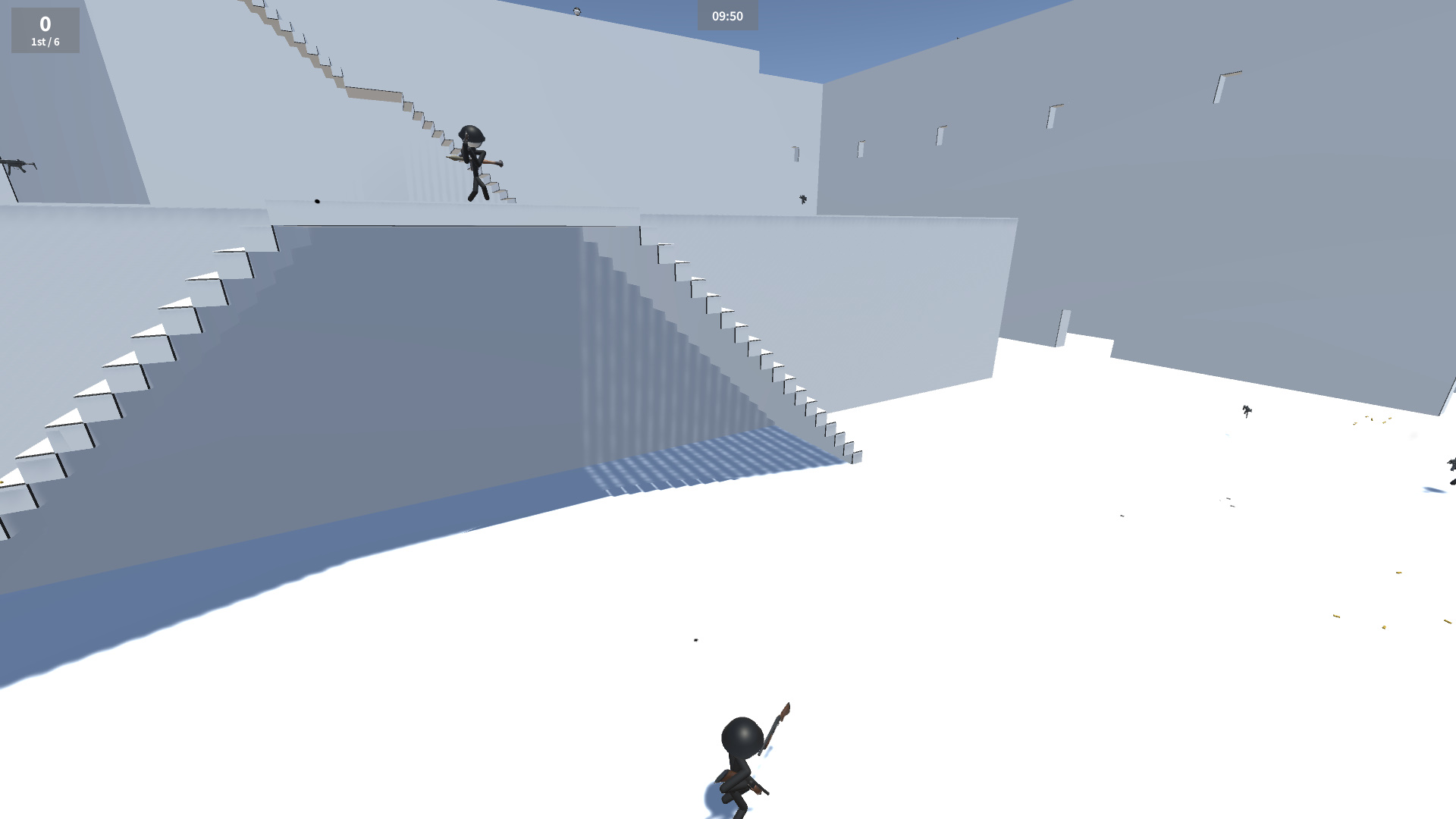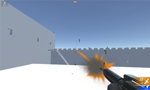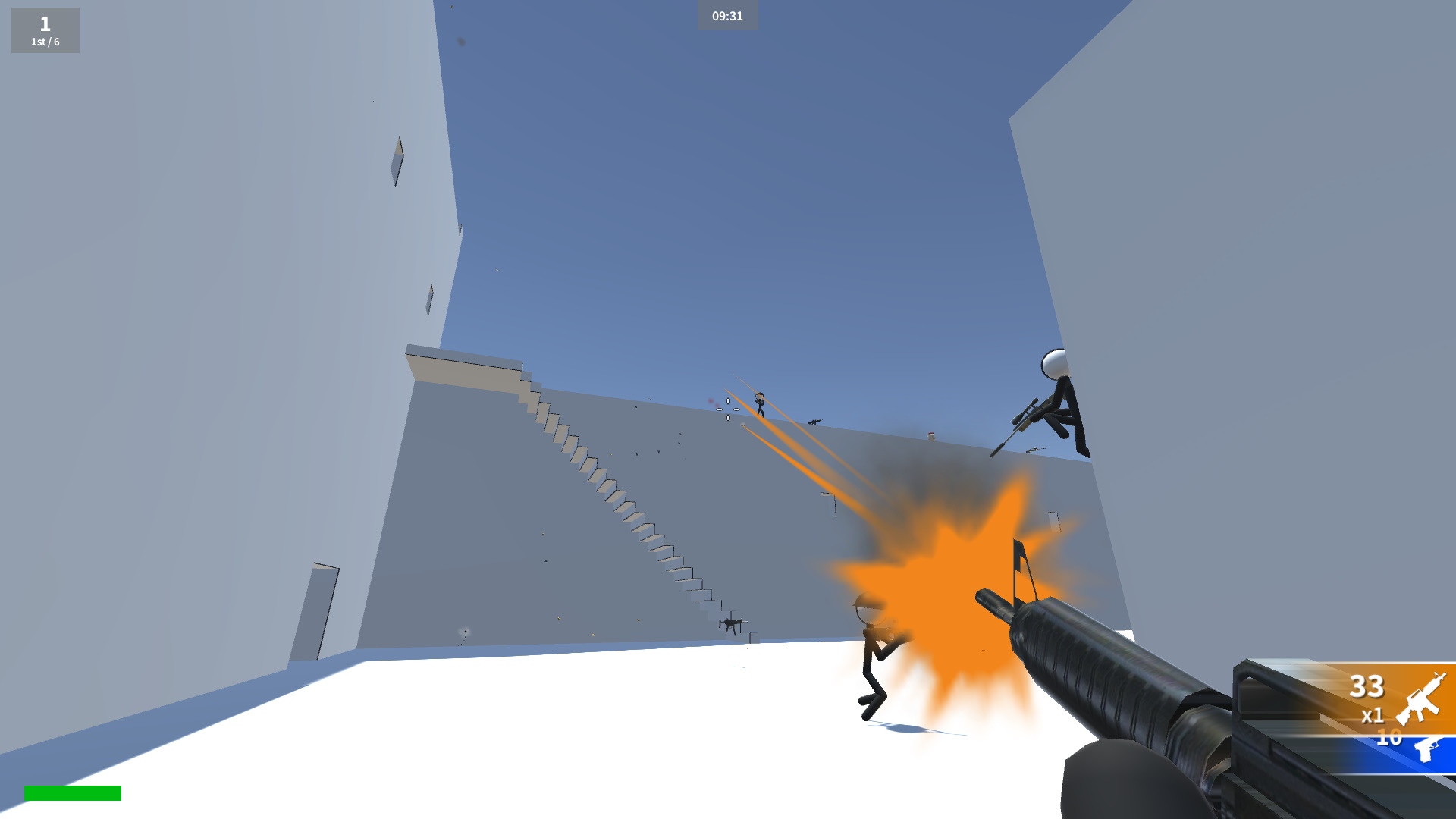 玩家可以控制火柴人收集机枪、狙击枪、火箭筒等武器。游戏结合第一人称和第三人称视角,整体画面比较简洁,场景由不规则的白色方块组成,感受不一样的射击乐趣。