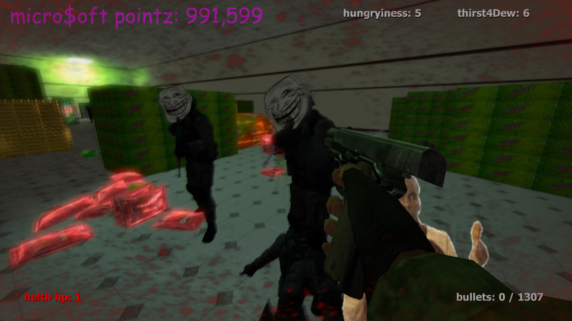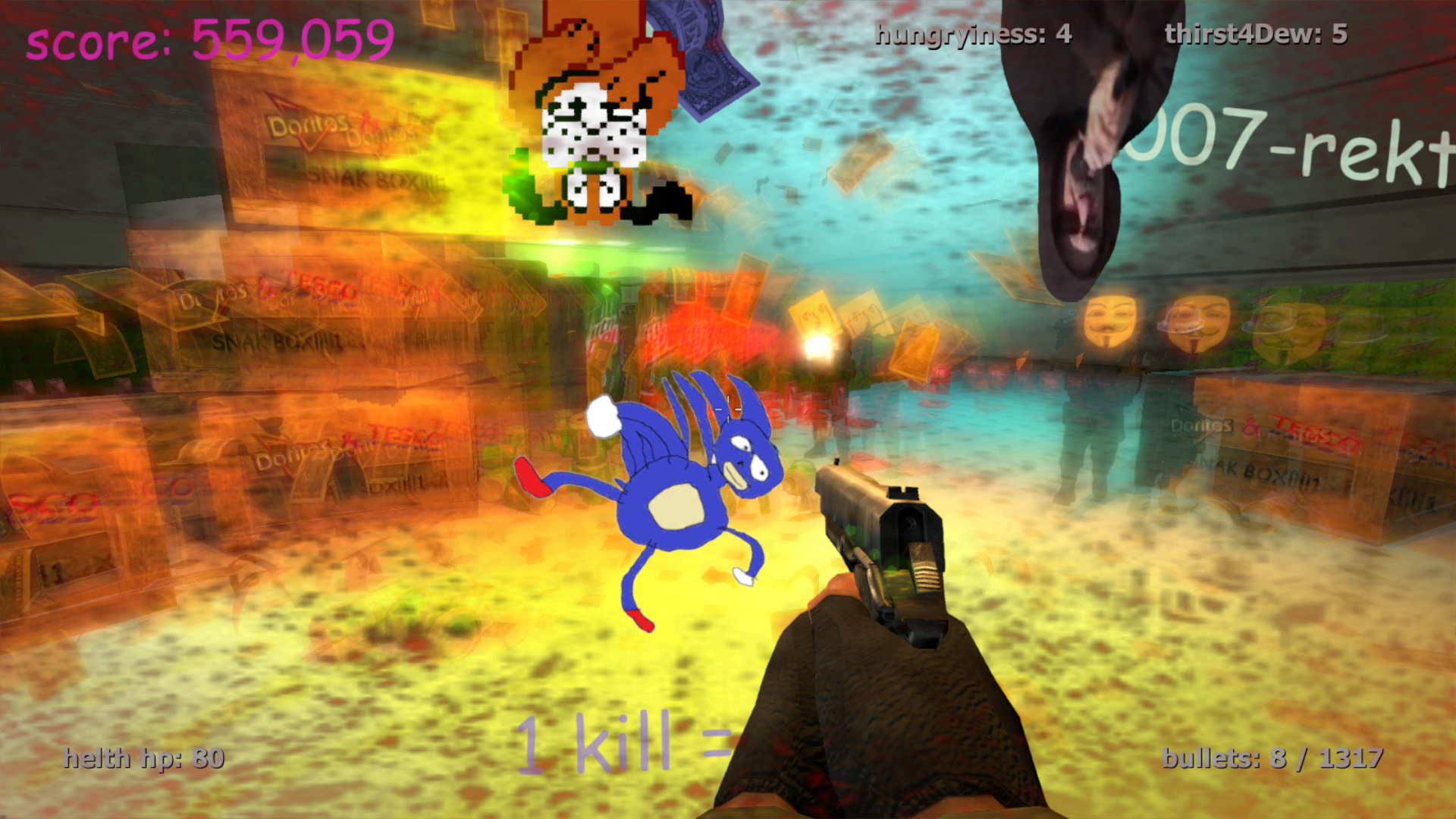 是由Andy Sum制作的一款第一人称射击类游戏,游戏中玩家要干掉视野里所有敌人,当玩家完成击杀时,游戏的下方还会出现各种人物的搞笑动作,包括战斗时出现角色发泄式的谩骂等等。