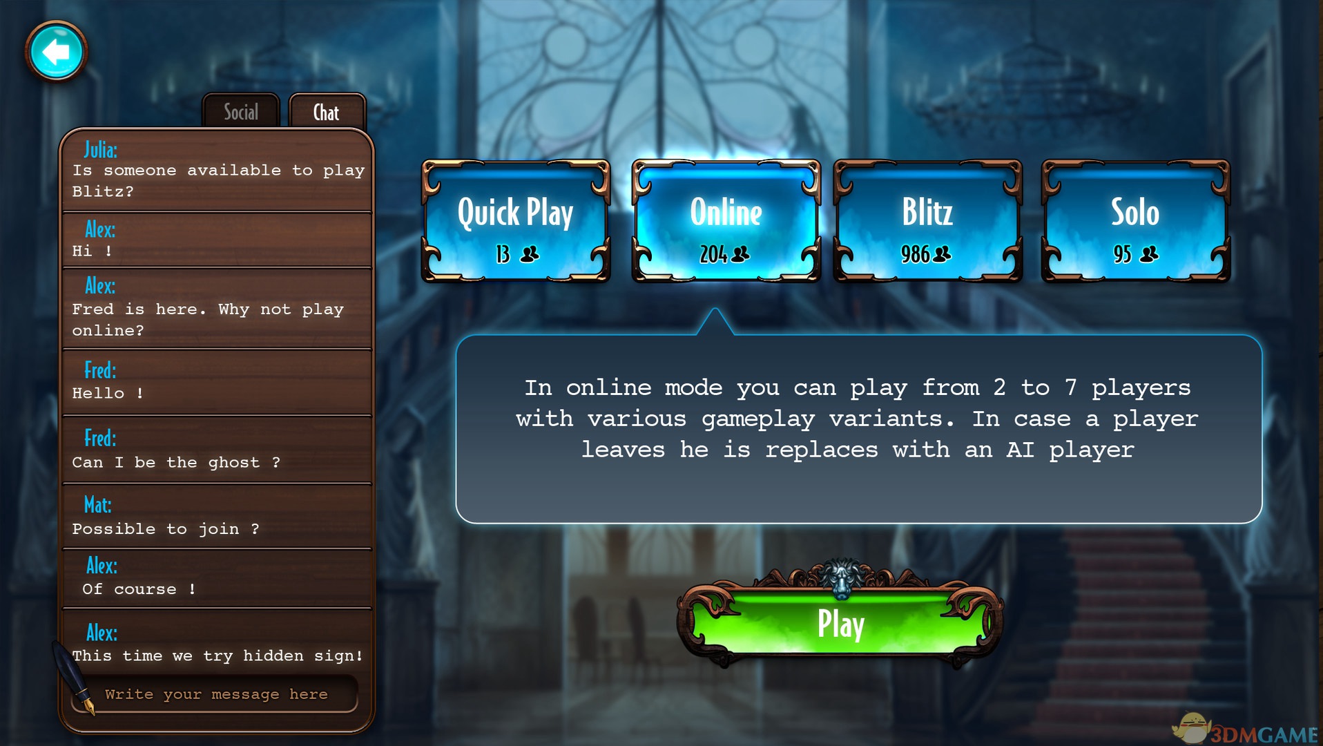 1人《诡秘庄园(Mysterium)》是Asmodee Digital, Playsoft制作的一款有着恐怖神秘气息的桌面解谜游戏。游戏由同名桌游改编而来,玩家在游戏中通过寻找合适的线索解开谜题。