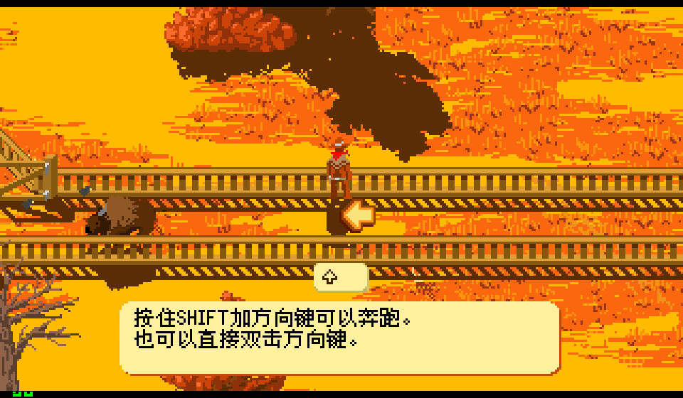 西部正义:双管猎枪是一款像素级冒险游戏,玩家扮演一个被灭门的牛仔,为了复仇而踏上血腥之旅,游戏的玩法比较简单,新手玩家也能驾驭。黄沙、荒野、峡谷、野牛。在像素漫天的狂野西部,一位牛仔在壮美的夕阳下过着平静的生活:追赶一头逃散的野牛。等他骑牛凯旋时,夜幕已经悄然降临。突然,眼前亮起一片冲天火光!跳下牛背冲向农庄,却发现燃烧的家园、死去的母亲和重伤的亲人!从垂死的哥哥手中接过沉甸甸的左轮枪,心中烙上凶手的第一条线索,跨上叔叔的骏马:一场混杂着酒精、金钱、愤怒的复仇之旅就此展开。