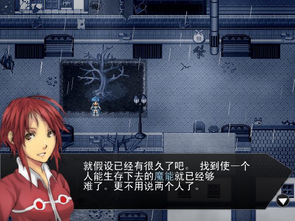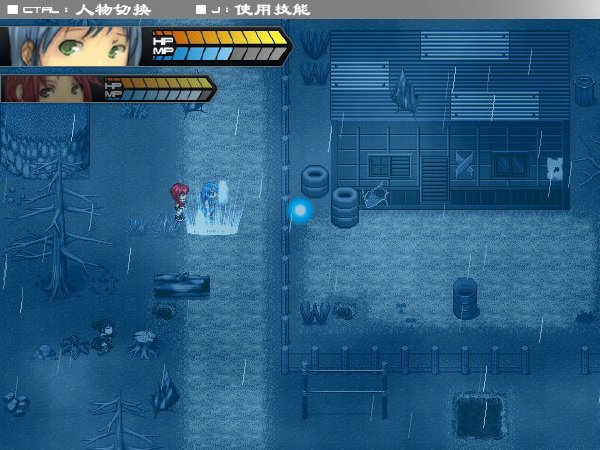 本游戏是由rm制作的ARPG类型的游戏,游戏时间为一个小时,属于小品级游戏。基本操作:上下左右键控制方向,空格或回车是攻击和使用,Ctrl键替换角色,j键技能。两位主角各有11点血和11点蓝,可以在帐篷或床上消耗一点蓝休息来恢复所有血,通过消灭敌人和采集获得蓝。两位主角有不同的技能,红发的技能可以把敌人定住,蓝发是充能弹,一弹灭一个敌人。