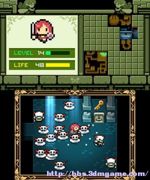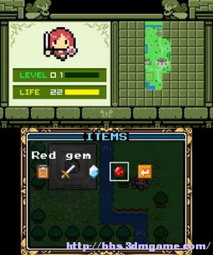 游戏方式是控制角色对怪物进行撞击攻击,角色也会扣血,不断的升级后来到新区域进行探索,是一款老式的RPG以冒险为主的玩法。