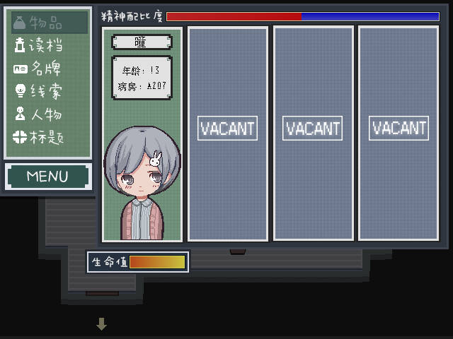 由尾菌子独立制作。游戏中,玩家将扮演少女瞳,在逃离精神病院的同时寻找背后的真相。
