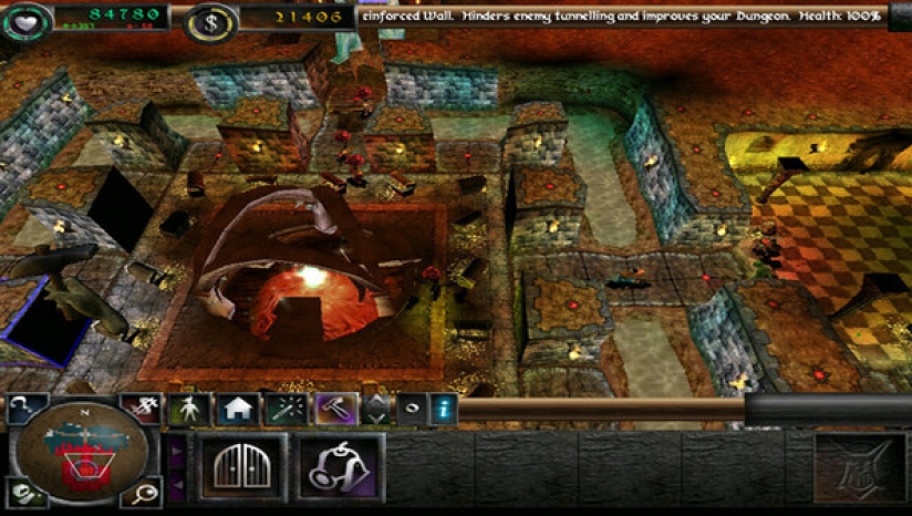 根据实际需求,修建各种功能的房间,陷阱房可放置滚石、暗门等陷阱,抵御入侵的英雄。兵营能训练怪物,提升它们的战斗能力。玩家要时刻保护好地下城的核心——地下城之心,一旦它被摧毁,游戏就会失败。