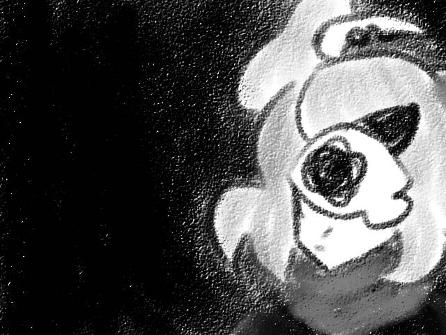 黑白的画面和红色的背景将画面中诡异的气氛烘托得淋漓尽致
